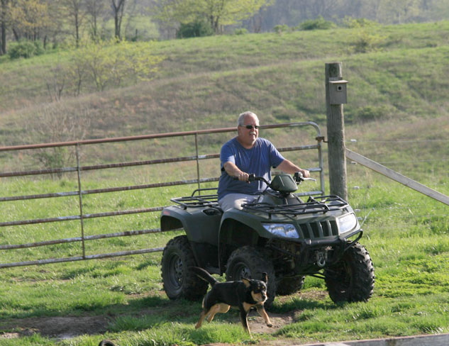 This year we purchased 10 heifers to start our herd. We plan on keeping 25 cows as money permits. Heifers are young females that have never given birth. Since they are inexperienced, there can be problems so they need to be watched. This is difficult since they like to go off by themselves and into the trees. By late April they were all done calving. It was challenging. Our friend Ricky helped by pulling the second calf. It was not easy and we would not have known what to do without his help. But, we lost one heifer and her calf when, tragically, she apparently had a stillborn breech and we didn't know what was going on. The vet spent a couple hours getting the dead calf out but she ended up dying that night from the stress and perhaps internal bleeding. We lost another calf because we didn't read the situation right. First we thought she was having problems and tried to get her into the corral, but she wouldn't cooperate. Then, because the afterbirth was hanging out, we though she must have already calved, so we left her alone. I found the dead calf the next morning.