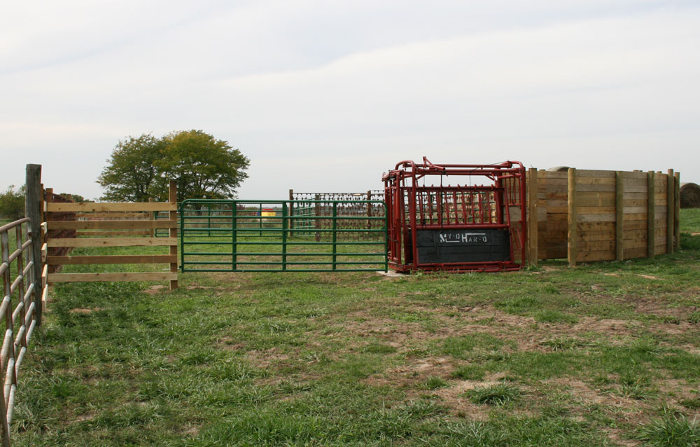 We decided to build a corral closer to the house. The existing corral had a wood chute that was falling apart and a head gate that is difficult to operate. We purchased a squeeze chute with an automatic head gate. We designed the corral based on Temple Grandin's guidelines. We saw the movie about her starring Claire Danes and are very awed by her. If you are unfamiliar, check out her website and the eponymous movie. The corral has a curved sweep that leads to the squeeze chute. The design is intended to keep the cattle calm. We still need to build the second half, as time and temperature permits. All told, around 50 posts to dig and set.