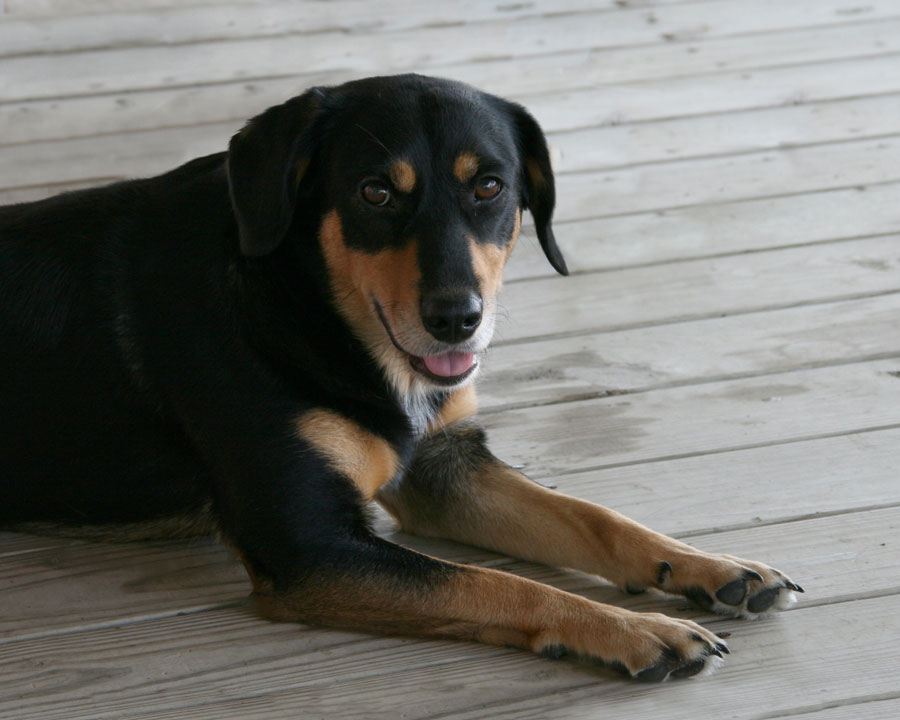 I introduced Sophie in the last chapter. When we got her, she was quite a challenge. We finally broke down and got an electronic collar. It ended up working very well for us. We mostly use the tone and a reward, and she was very responsive. She finally learned to come to us instead of running off. She also stopped going next door when their big dog chased her one day and bit her in the butt. However, no matter what we do, we still can't get her to stop eating cat poop. She has become a very sweet and loving dog. She's pretty smart too. To bad we are to dumb to teach her much.