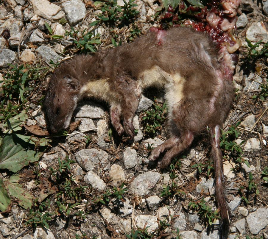 On the day our corral gates were delivered, I discovered a dead weasel in the driveway. I didn't even know weasels were around here. This is certainly the only one I have seen. I don't know how he ended up dead in the driveway. It may have been Kitty-kitty's doing. Unfortunately, he also was run over by the delivery truck. There are too many critters that I only get to see as roadkill on the side of the road. Or, in this case, in my driveway.