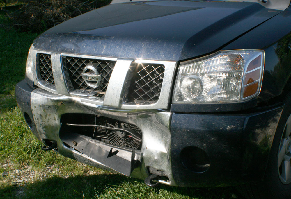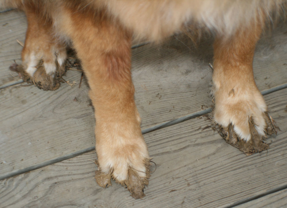 to them. :: COMING OUT OF HIBERNATION My life has basically become a daily routine of cleaning dog feet and cleaning up dog barf off the carpet. Almost every time Aiko goes outside she comes back with mud caked between her toes (see picture). If the day gets above freezing, they all usually need their feet washed when they come in. Since the faucet outside is frozen during the winter, I've been using a small bucket which I put their feet in. You would think I was dipping their feet in boiling oil. Even though we do it almost every day, only Aiko has gotten slightly used to it. Sammy and Buster spend a lot of their time outside digging and come back with dirty paws and noses. They're getting better and better at catching and eating voles. The less voles the better, I say, but then they get sick--usually in the house. The lawn is all torn up from the moles, gophers and voles, and then the dogs digging to try to catch them. Voles are new to me. I understand they are tunnel makers but I haven't figured out which tunnels are which. Voles look like field mice with short tails. The dogs also enjoy sneaking into the pasture and eating any stinky smelling disgusting thing they find. They love eating fresh cow poop at any opportunity (which also makes them sick). It has been better since the cows were moved to other pastures but the problem will return when the cows do. Why they insist on eating things that make them sick, I can't figure out. They get more than enough food. We spoil the heck out of our dogs. Most people around here just leave their dogs outside all the time. Either running loose or stuck in small kennels. Probably because they don't like cleaning dog feet. :: WORK MoDot has asked Danny to come back to the sign shop again starting April 1 and through the summer. I have had spotty work and not much success finding more. I am very grateful to those of you who have given me work lately. Sure, the cost of living is less here but not by much. Food and consumer goods are about the same. Gas prices are a little bit less but we have to drive farther to get anywhere. :: PROJECTS The days go by so quickly, it is amazing how little gets done. We have a long list of items that need fixing around here. There are a number of details left to complete the shop but they await warmer temps and cheap lumber deals. It's been too cold to work on fixing up the barn, but Danny did replace the struts in my car. And I replaced the retracting antenna that was misbehaving. At the end of Fall, I took the riding mower out to do a last mow for the season. This is usually Danny's job and it wasn't clear to me that the oil needs to be checked each time it is used. Shortly after I started, I heard a very loud. bad noise and a big puff of smoke and the engine was dead. After pushing it back to the barn, we found a large hole in the side of the engine case. Not good. I began researching replacement engines and Craftsman wanted $1,000 for an 18hp Briggs and Stratton. That was more than the $800 we paid for the entire used mower last year. We had all winter to get it repaired so I kept my eye on a new 20hp replacement engine on Ebay. The guy had a few to sell and listed them one after the other. I bid on them until I won one at the starting bid of $300 (+ $50 shipping). Danny easily removed the old engine and put the new one on. He opened up the old engine and found the bent and broken connecting rod. Amazing what a lack of oil will do. I figured I got off fairly easily for my negligence. I will take care to check the oil from now on. :: AUCTIONS Earlier this winter I went to an auction to look at an old hoosier style hutch that was listed. I was thinking it would give us more storage in the kitchen. It was pretty beat-up. Painted with yellow wall paint, warped doors and water-damaged sides. I bid on it anyway not knowing what it might be worth and ended up winning it at $110. See the rest of the story. At the end of the summer Danny let me go to an auction alone. I was pretty good until bidding started on an item I hadn't even noticed. I was in the market for a rototiller but this item intrigued me because it had several attachments. I won the bidding and then wondered if I had just paid $60 for a bunch of old scrap metal. See the rest of the story. We have witnessed several real estate auctions. One house in Marceline went for $5,000. Sure it was small and needed lots of work, but the lot is worth more than that. Recently a pair of homes in Brookfield went for $11,000 and $9,000. They also were small and needed work, plus they were RIGHT next to the railroad tracks with a motocross course across the street. :: HEAT :: HOME IMPROVEMENT Our next job was fencing it to keep the cows out before they returned. It took a surprisingly long time--almost a month--to finish the 210 feet of fence. We used the old 3-point post hole digger we bought when we got the place, on the tractor to dig the holes for the corner posts. Then the tractor made short work of pushing in the intermediate steel posts. Danny made a fancy gate for it. The ground around it is still bare but my father sent us a bunch of wildflowers seeds and I think this would be a great place to plant them. The kitchen sink and washer line had been running to the front of the house and the plumbers tied that in with the rest of their work. It was our responsibility to tie in the bathroom plumbing. We started it just in time. The very morning we planned to start, the toilet backed up and flooded the bathroom and basement. We had a little trouble getting the old cast-iron apart and taking the fitting off the shower drain. Once that was done everything we had dry-fit glued up quickly. We couldn't find our hole saws so Danny had to run to the store to buy one so we could drill the toilet vent pipe through the joists. Still, we had a functional bathroom by that evening. The toilet ended up too close to the back wall so I had to cut a hole in the wall to get it in. Just an