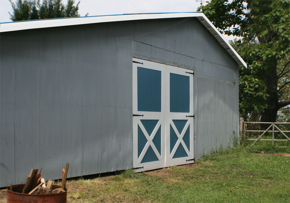 Danny built beautiful new doors for the barn. They are huge! Each door is about 11'x5' and weighs at least 150 lbs. (they're rather hard to weigh). It took more time to paint them than to put them together. It was easier than we thought it would be to carry them from the shop to the barn and put them up. I am painting the eaves (a project we have been putting off since we re-roofed the barn). I hate painting eaves!