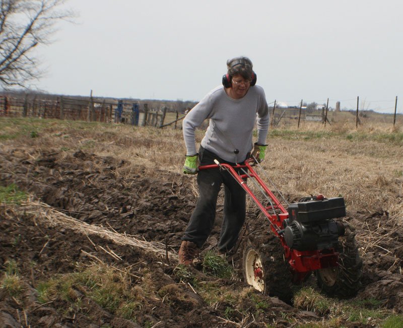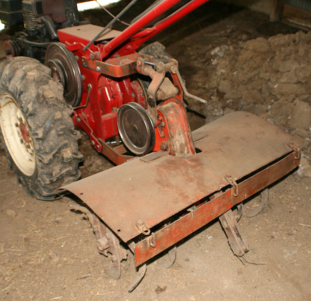 At an auction we found another garden tractor. The same model as mine with the rototiller attachment. I was ecstatic! Though I had been looking, I never thought I would find one. I took it completely apart to check it out, tightened up the chain, and put it back together and we took if for a test run. It started out strong and then froze up. I was so disappointed. I was worried it was a goner. But it turns out there was one screw that needed to be backed out and then it ran like a charm. We got a couple loads of manure from the loafing shed and a load of composted manure for one of Danny's co-workers and tilled it in. The rusty spare tractor sits in the barn waiting to be restored.