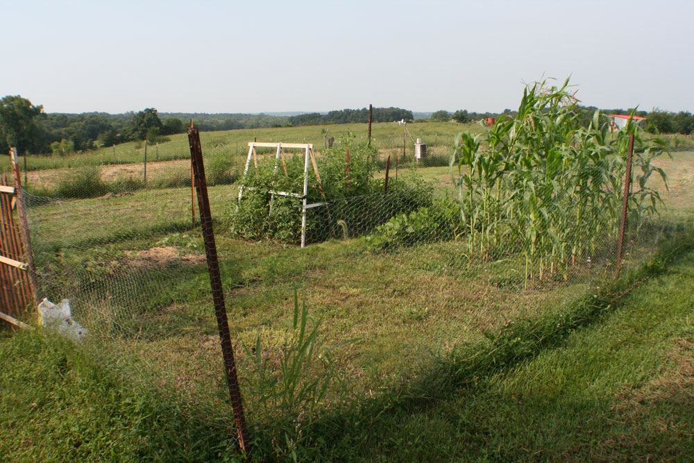 This is just a small sampling of the life around the yard. Most of the smaller images :: THE GARDEN Danny tried getting the old rototiller going that had been left in the barn. He got it to run but it has a bad banging sound inside the engine and the throttle linkage was screwed up so he didn't think it was worth fixing. I didn't want to miss having a garden this season so I took some time on June 29 and ended up digging the vegetable garden bed by hand. I started in the area that the former owner had used the year before but the bulldozer had moved all the topsoil off and it was just clay. I then moved to the lawn in back of the house where the soil is much better. I had to dig out all the sod and amend the soil. It was so hard to do with hand tools that I only dug where I put my plantings and left the sod as walkways. I got a head start by buying starts of tomatoes, zucchini, melons, and peppers. I planted seeds for beans, corn and carrots. Danny wanted cucumbers but I ran out of energy to dig up another bed. The Zucchini plants grew rapidly and I had some nice zucs in less than 2 weeks. Then, either the excess rain, the squash bugs or something else killed them off. Currently, we have cherry tomatoes andI picked my first Better Boy tomatoes. I've had a couple handfuls of beans and the peppers have flowers and large green fruit. The corn is about 4-1/2 feet tall. (the neighbors is at least 6'). We had a wind blow by the other day and knocked over all the corn. I had to prop it back up and cross my fingers that it will be okay. I don't know what to expect of the local fauna. I put up a fence but can only hope it will deter the possums, raccoons and birds from wiping me out. I think a lot of people use electric fencing. Next year, I hope to get a earlier start and, using power machinery, make it bigger and better. A couple of the neighbors have been kind enough to bring us some of their excess crops. Hubert and Marquita have dropped off numerous delicious cucumbers. I thought they gave us too many but I actually ran out. And Jack Dowell brought a bag of fresh corn, squash and onions.This week we got some fresh corn from the Jones'. I almost wonder if I should bother with my own garden when everyone else has so much to get rid of. Nobody has offered any home-grown tomatoes though, and there is nothing else like them. I can hardly wait for mine to ripen. :: THE YARD :: THE YARD
