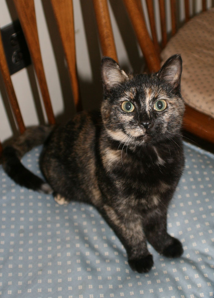 is a short-hair tortoiseshell. She has a good outgoing personality